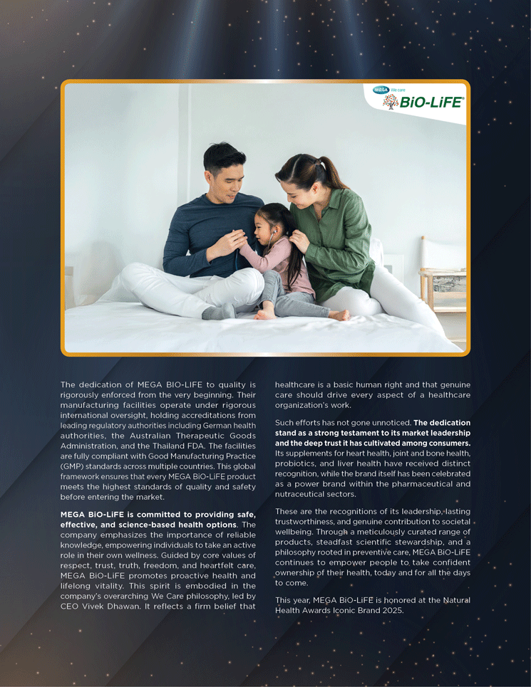 These are the recognitions of its leadership, lasting trustworthiness, and genuine contribution to societal wellbeing. Through a meticulously curated range of products, steadfast scientific stewardship, and a philosophy rooted in preventive care, MEGA BiO-LiFE continues to empower people to take confident ownership of their health, today and for all the days to come.