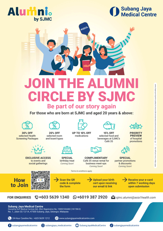 For more information about the Alumni Circle by SJMC, visit https://subangjayamedicalcentre.com/privilege-clubs/alumni-circle.